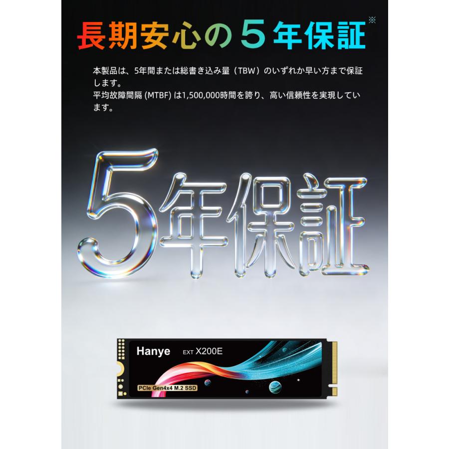 | 保証期間 | 当店5年保証/耐久性の上限(TBW)に達する ※いずれか短い期間まで | ||